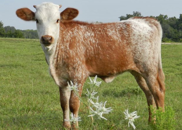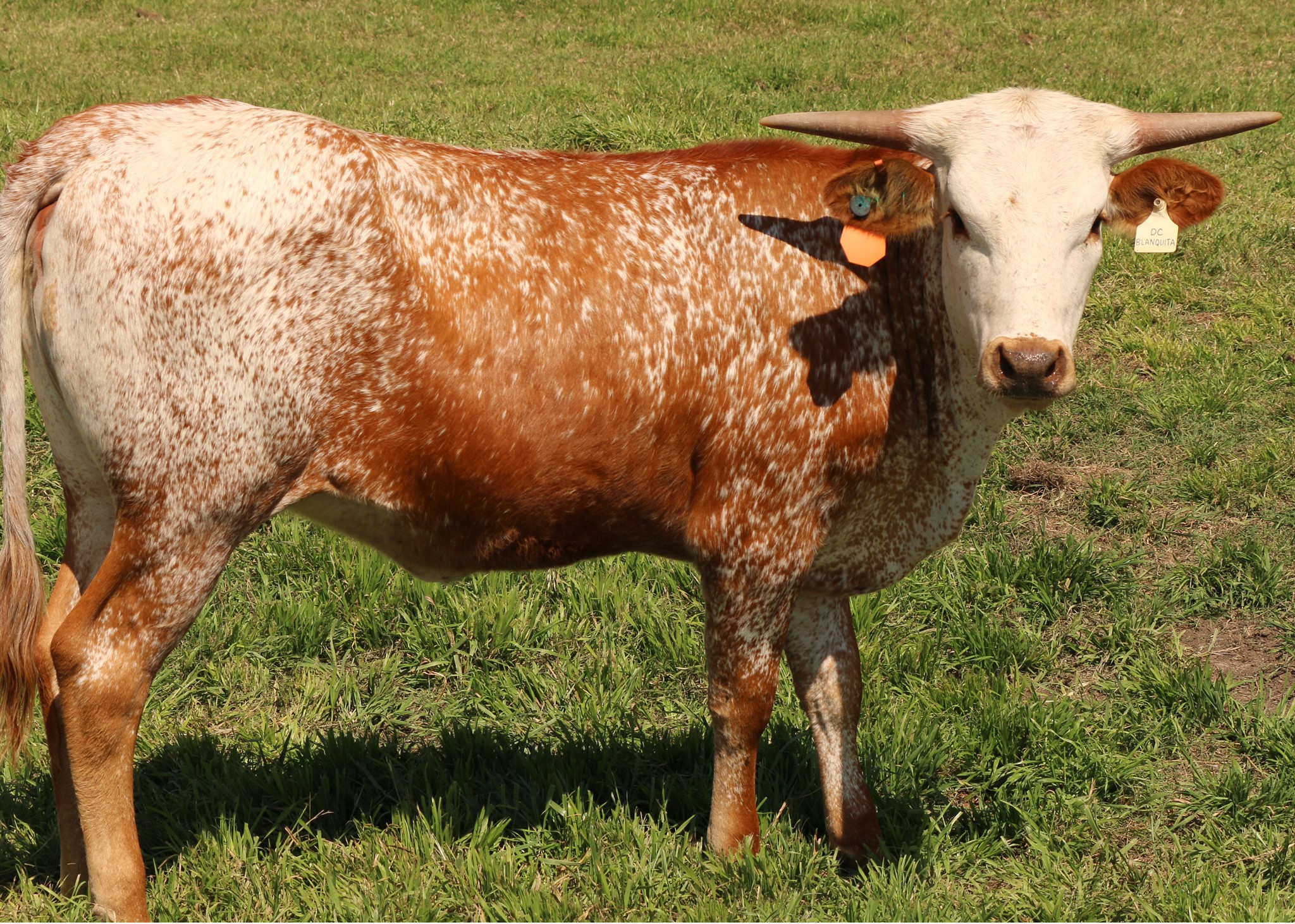 She is going to be very special, horns are thick and going straight out. Wild color and great pedigree. This is one very special cow..now she is 90 tt